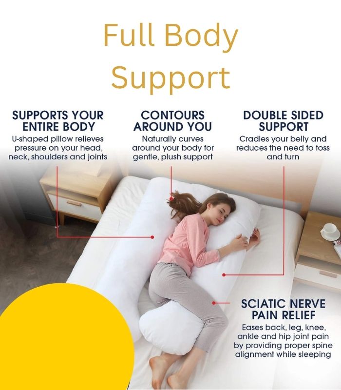 The U-shaped body pillow provides comfort and support in pregnancy or if you are suffering from back, hip, shoulder or neck pain. The comforting shape cradles your body all night long for ultimate support to prevent and soothe any aches and pains.